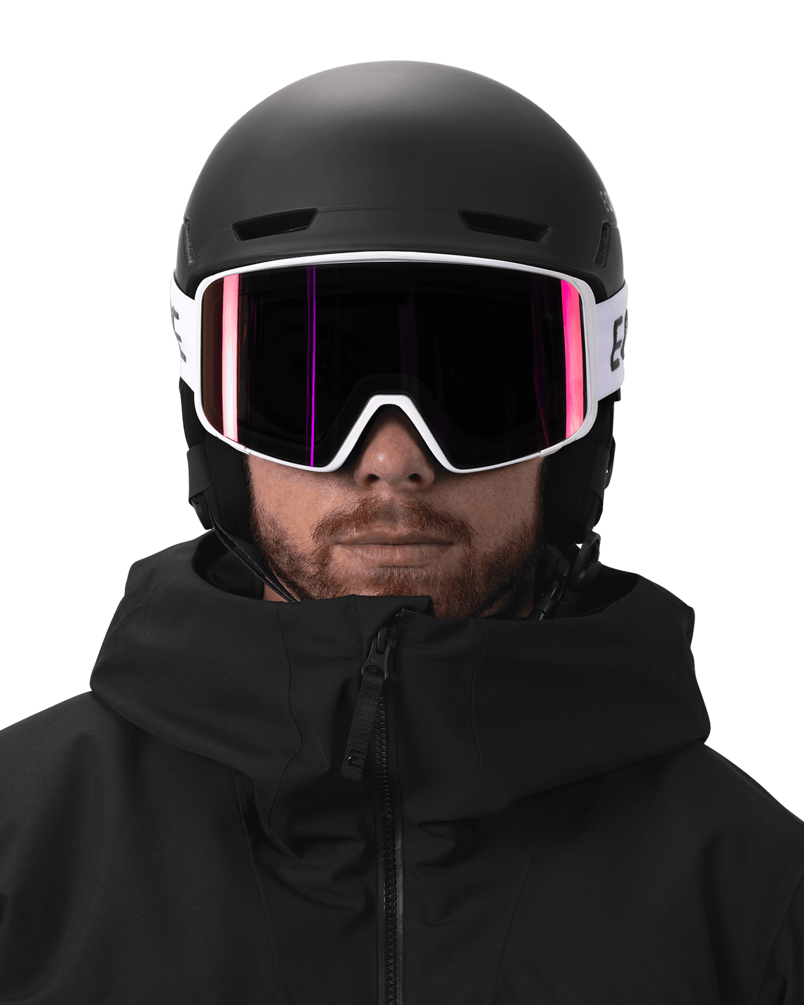 Eine zylindrische Skibrille mit Vollrahmen, die ein großes und breites Sichtfeld bietet. Die Skibrille wird mit einer Linse der Kategorie 2 geliefert, die sich gut für sonnige und bewölkte Bedingungen eignet, sowie mit einer rosafarbenen klaren Ersatzlinse für schlechtere Sichtverhältnisse. Eine Skibrille für jeden Tag.